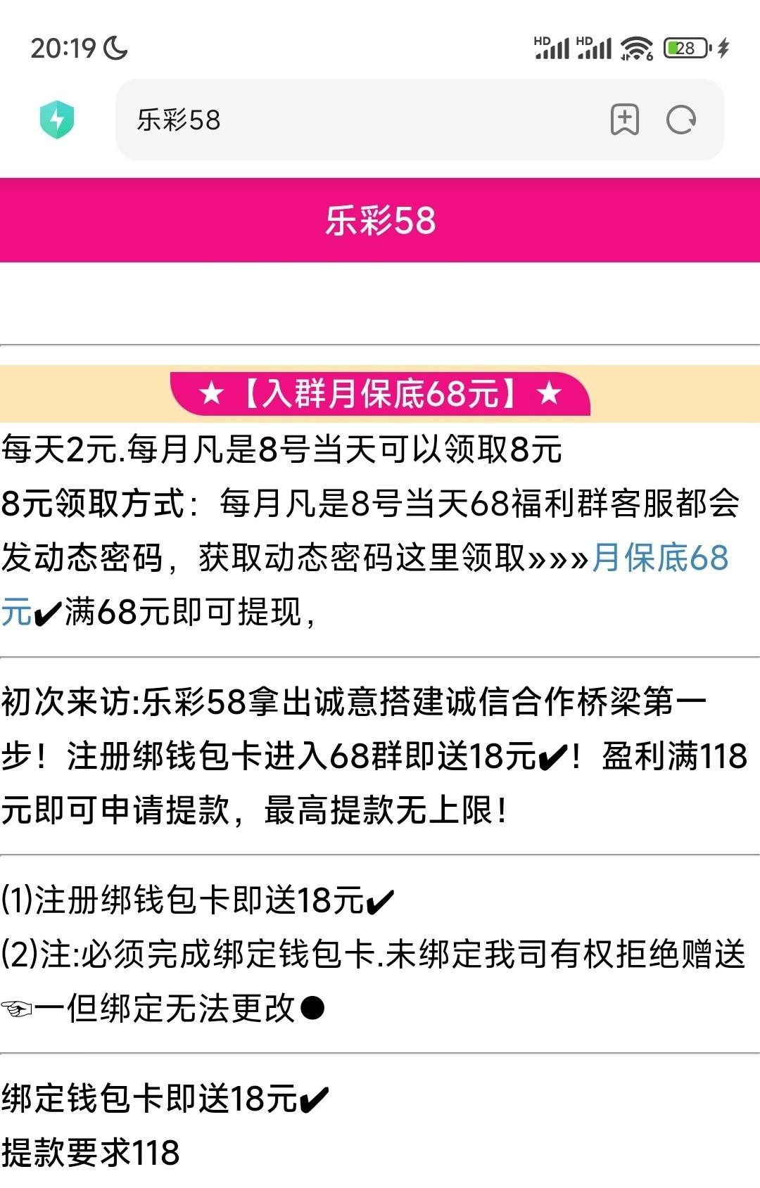 【乐彩58】注册绑卡添加68专员领18