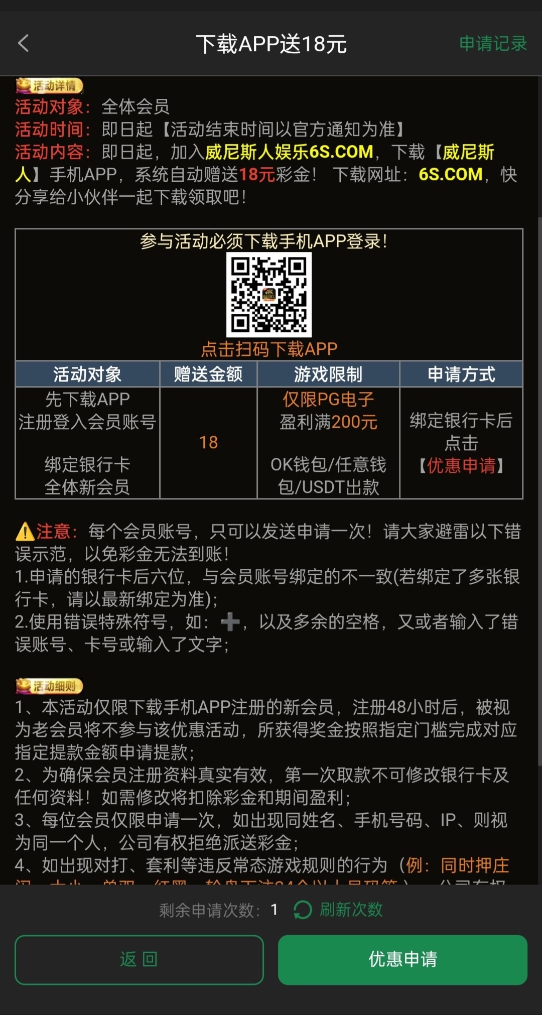 新用户注册下载APP绑定信息自助申请18注册彩金,具体自测吧。 6S.com