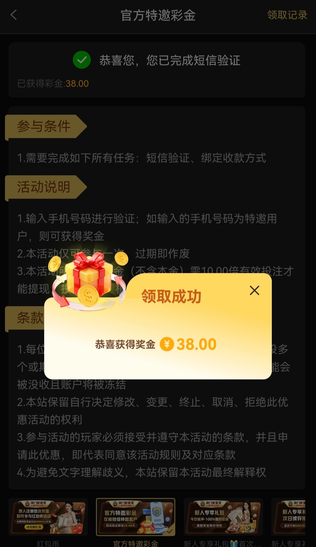 必须收碰吧 没收到短信的就要完成首存 我之前没收到短信去就没给 这次收到了就给了 碰不到别喷我谢谢