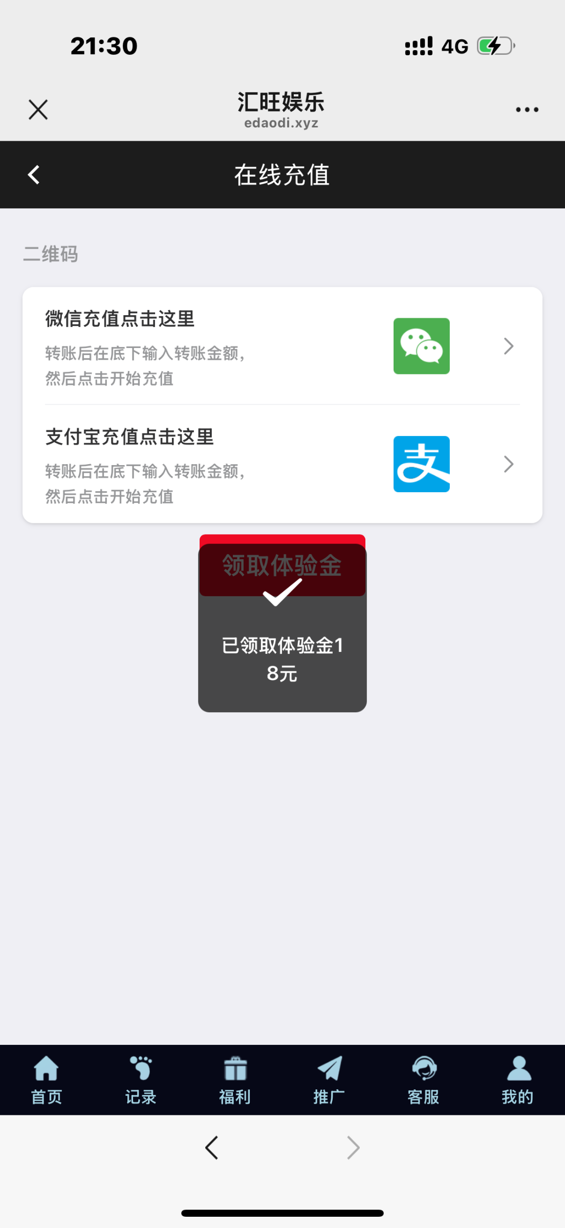扫码登陆找客服领18体验金