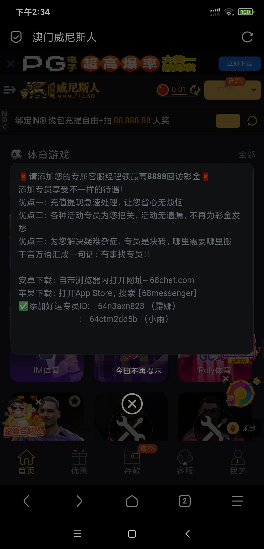 【威尼斯人712】回访彩金28