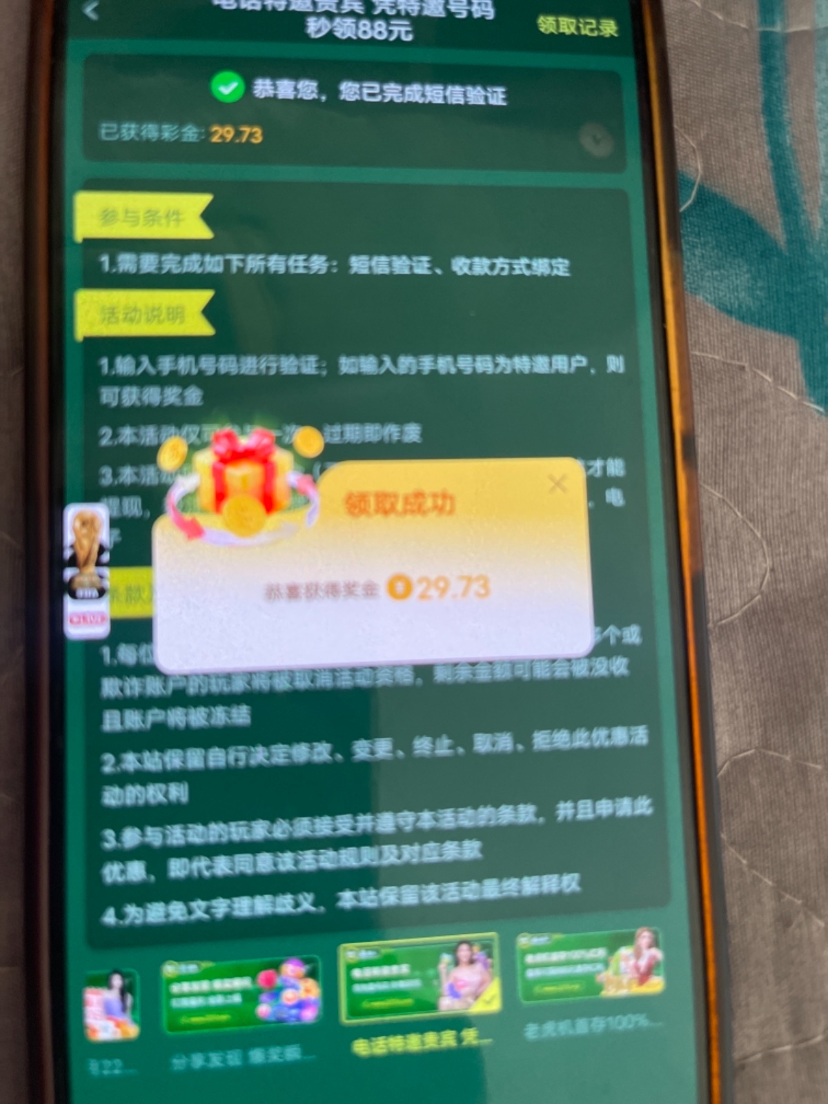注册账号 下载App验证号码 是否特邀 最低派送28彩金  需要完成280流水才可以提现 我领了 2个号