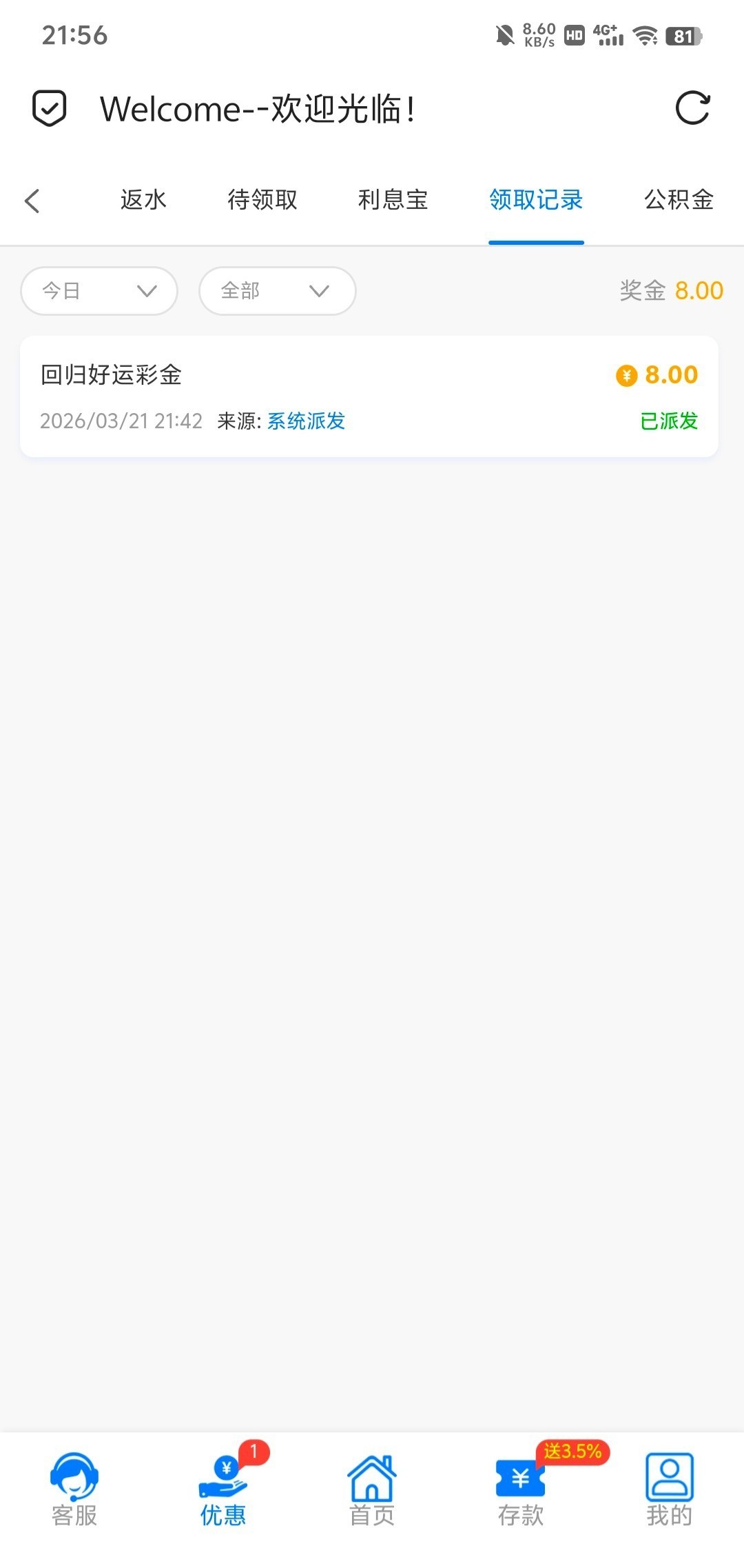 一段时间没登录上号看有回归好运金8