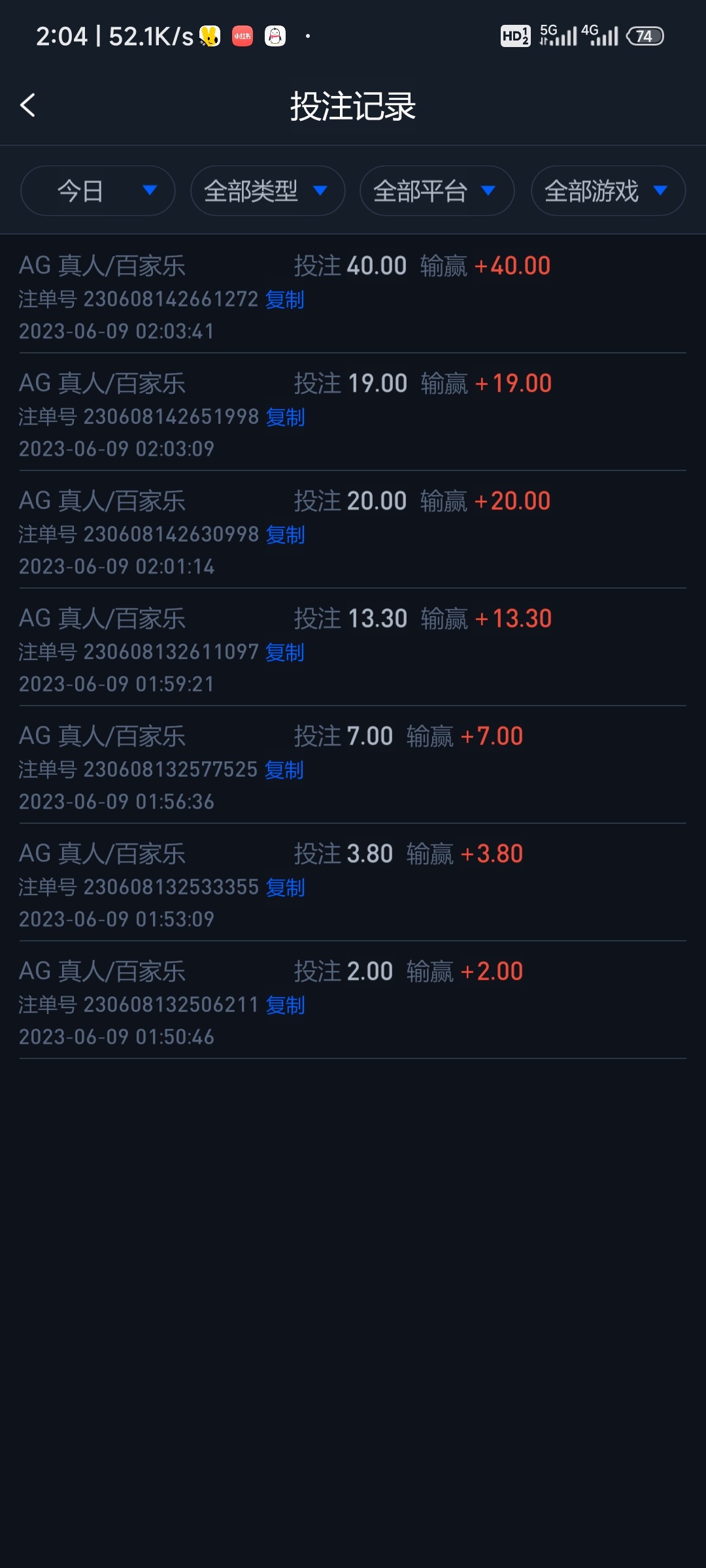 红包抢来的两块,AG过几关就出来了
