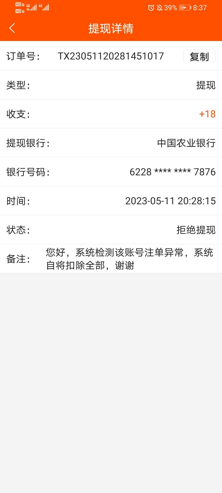 钱到账了,但号废了