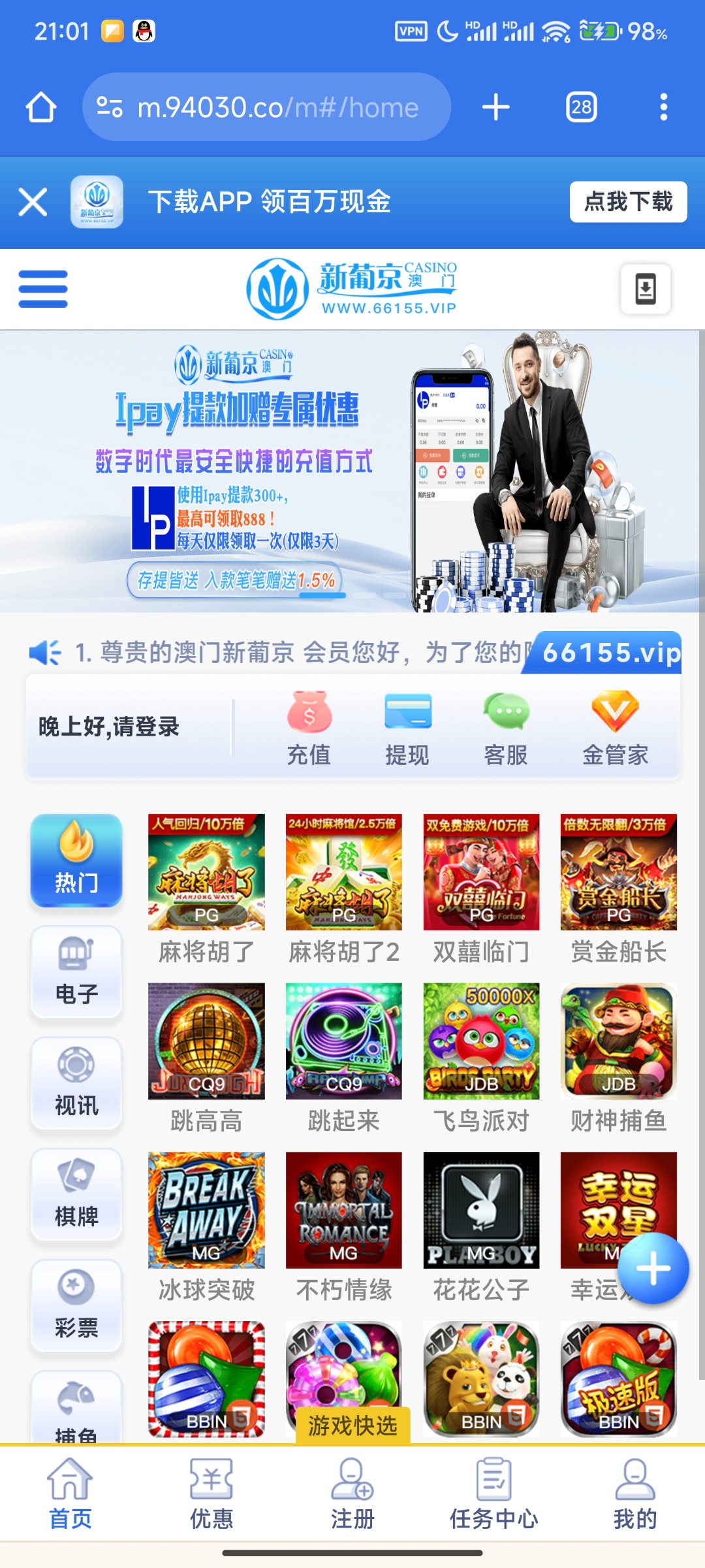 黑台,避雷,出款也是空汇,上了这个台短信特邀100+44,结果提款一看最低提1000,然后打上了1000,被黑了