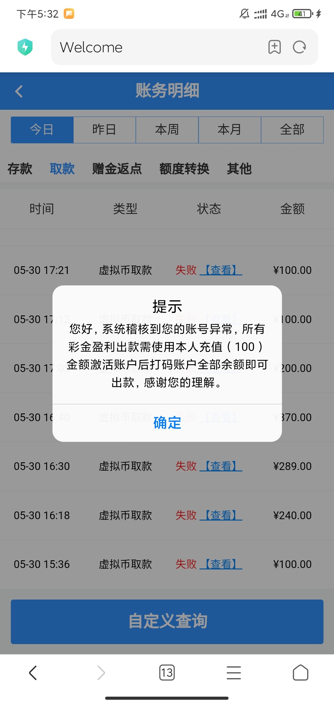 冯哥 我之前充200买刮刮卡 也中了一万 被黑了