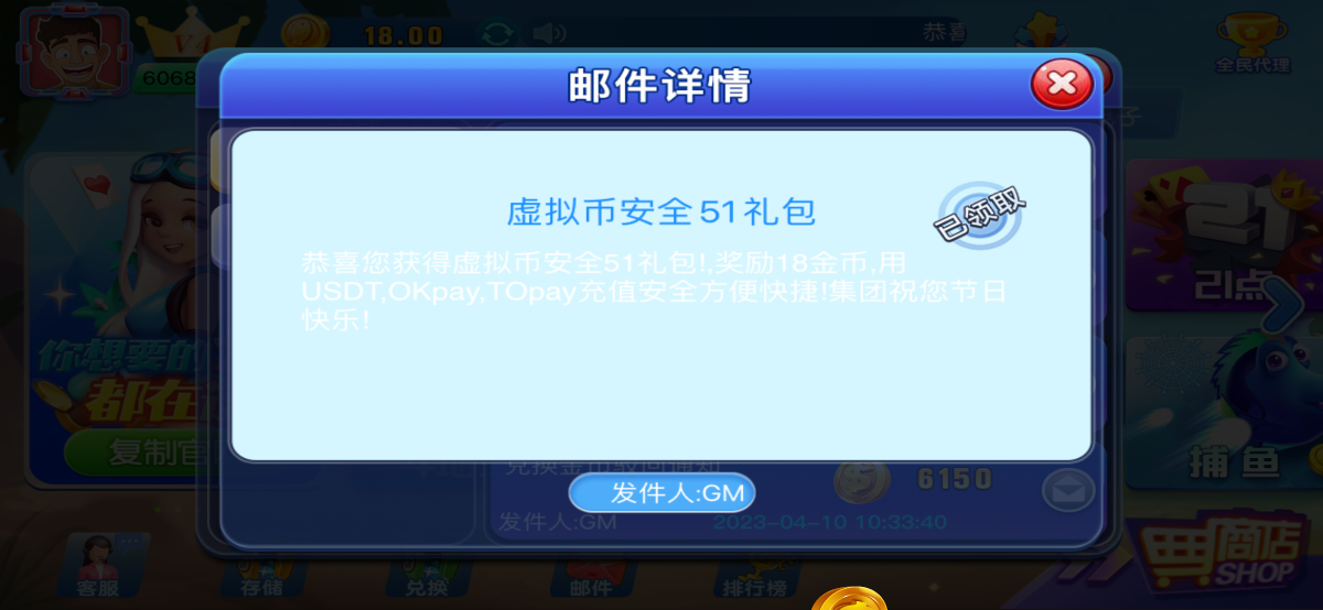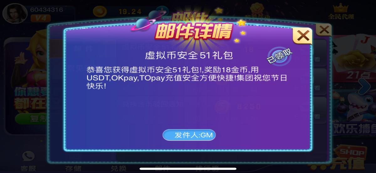 这七个平台之前充值提款过的 上号看看 邮件有回馈18彩金 (to ok u)都算 亲测领到两个号 要20入场可以小额充值100 或者等18号回馈