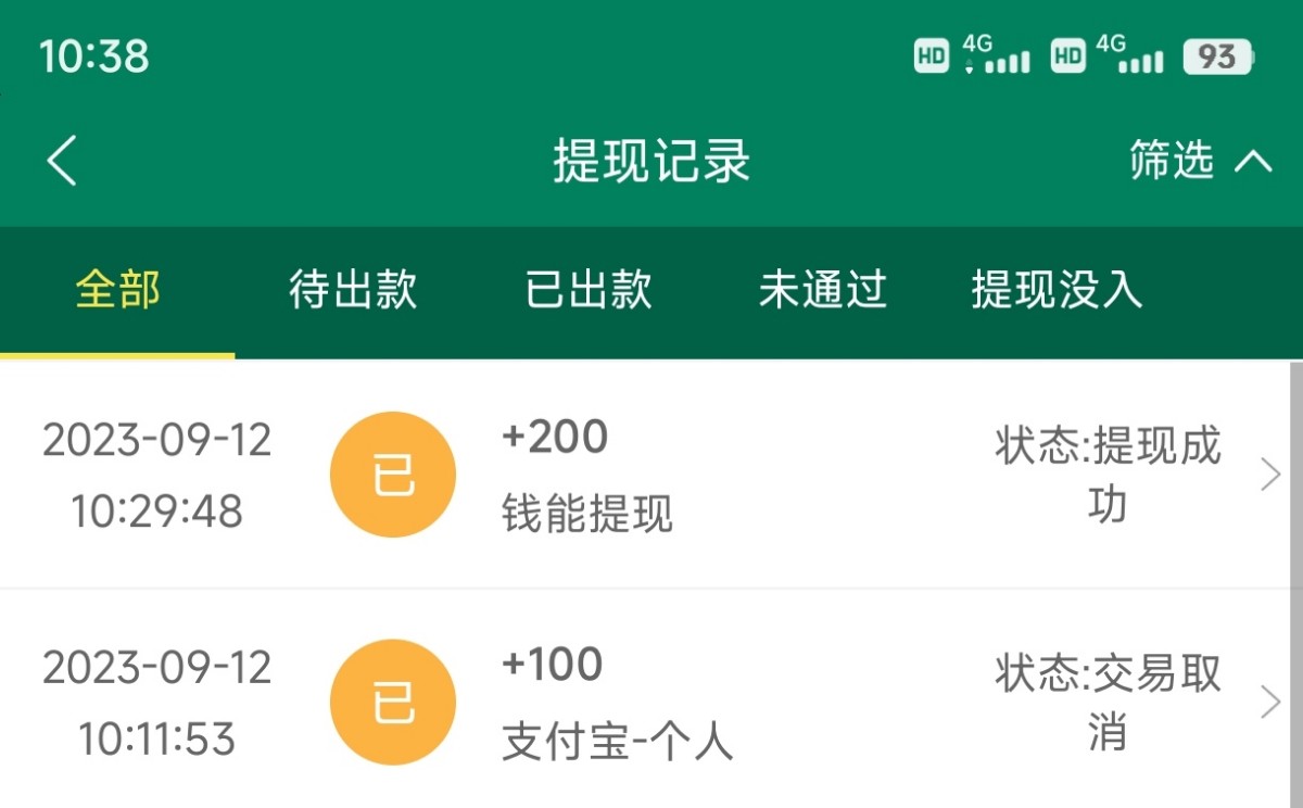 9块钱白嫖了300 第一个100没人付款到钱能钱包里面了