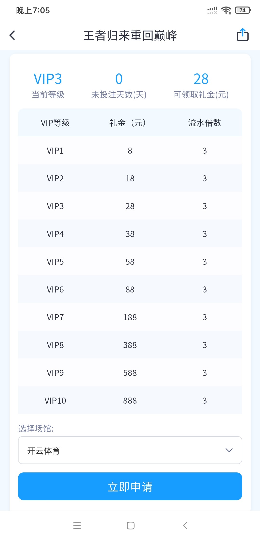 进福利中心看,账号有活跃度的都发了好像V1 28 v2 38 v3 88