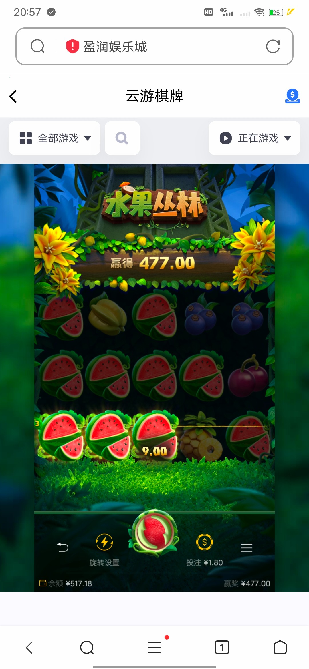 1块钱是1000分,设置你压多少分直接点梭哈就可以下注了