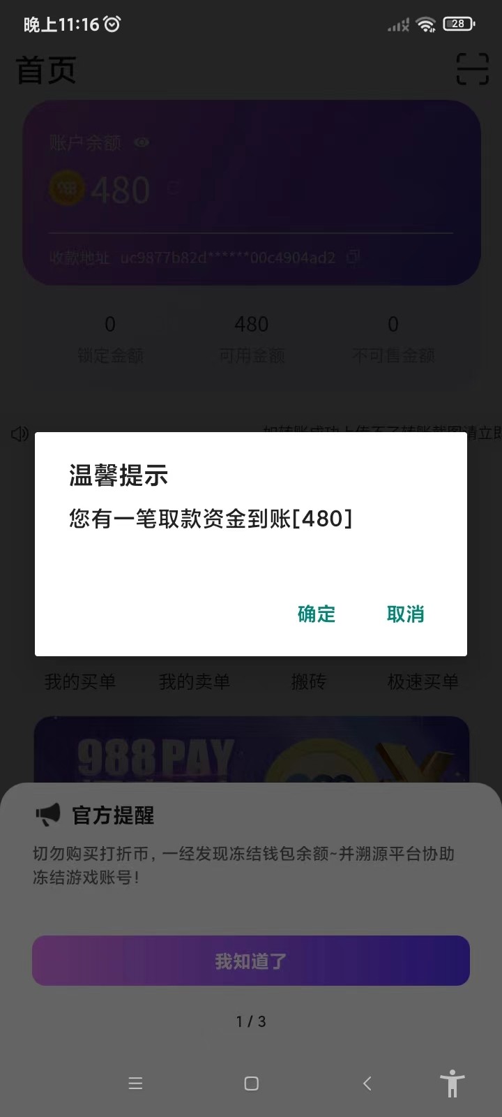 太牛逼了  送了两个58   200退回  打到480  半小时到账