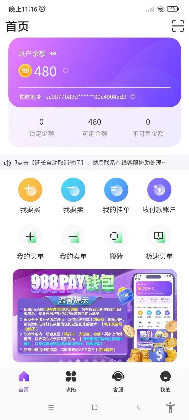 祝老板们发财 太牛逼了  送了两个58   200退回  打到480  半小时到账