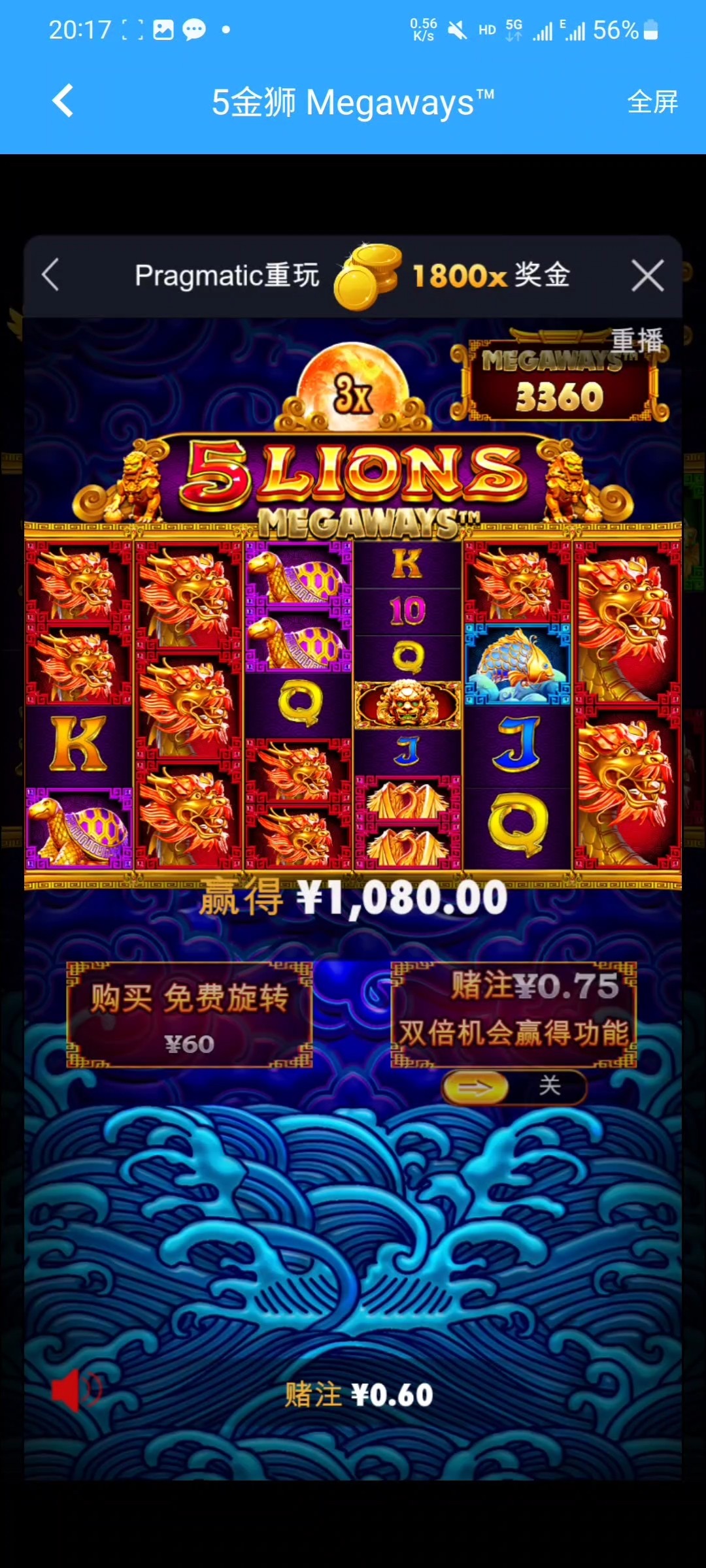 兄弟们吃肉了 6毛就点了3下 给了1800倍