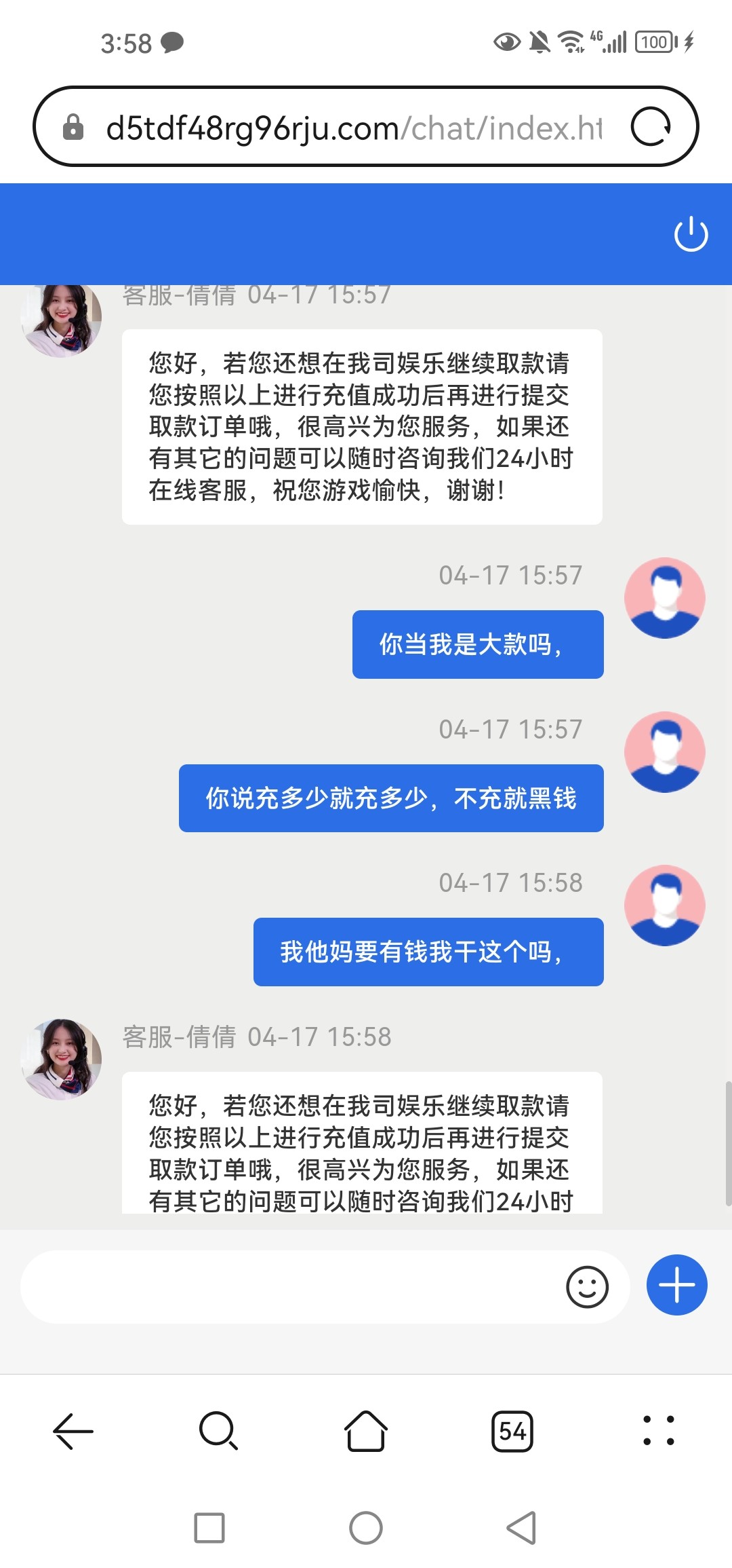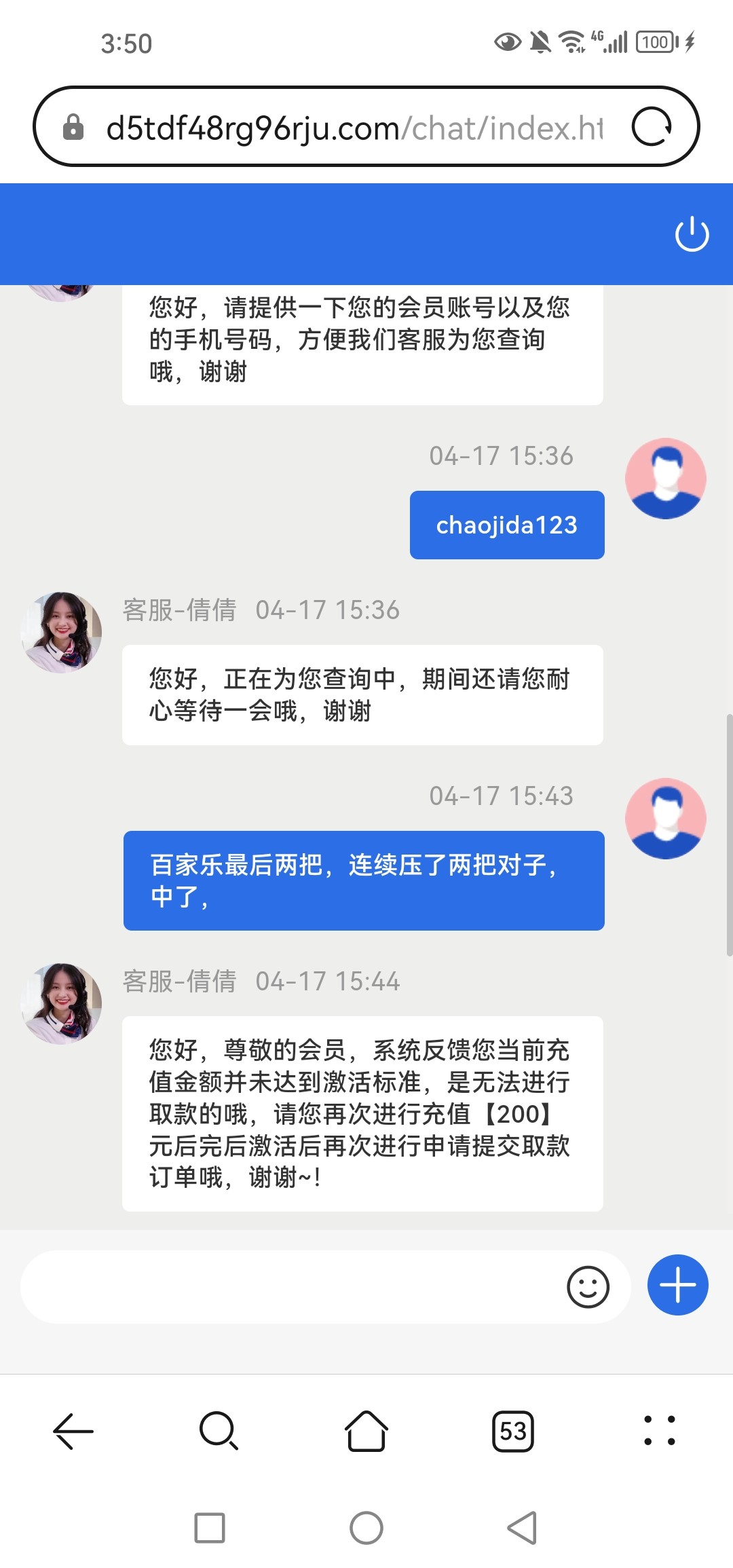 小蓝签到系列好几个喜欢随机黑,估计原因如下,1,当天营收情况,2,审核员心情,3,出款通道钱包里面有没有钱。个人经验建议按照客服要求优先使用k宝或者vip