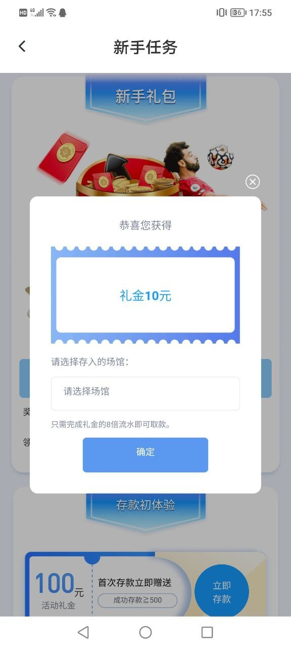 注册绑定手机号银行卡,优惠活动里新人领10元彩金
