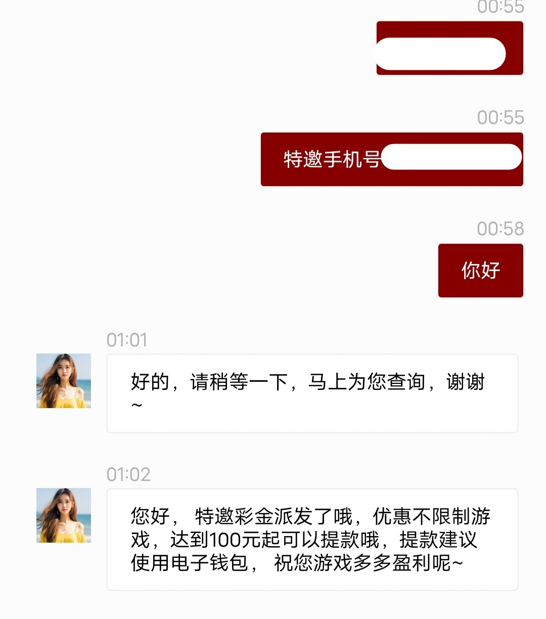 现在去找客服申请特邀彩金