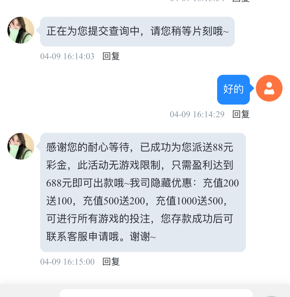 特邀碰瓷看看有没有下方短信,有的话去注册完善信息找客服申请88彩金,没有可以P图试试,去碰瓷切记勿充值。