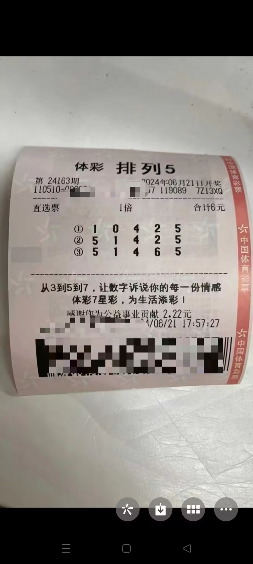 体育彩票排列五 六块钱中10万 连续三期带你们吃肉