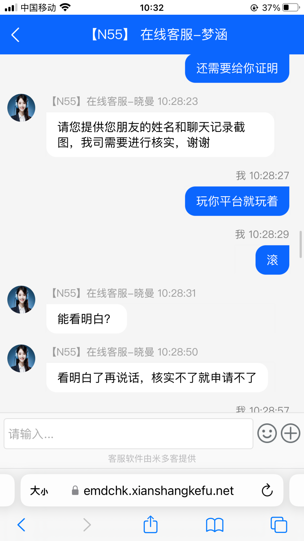 N55娱乐城 客服骂人 50都黑 直接封号