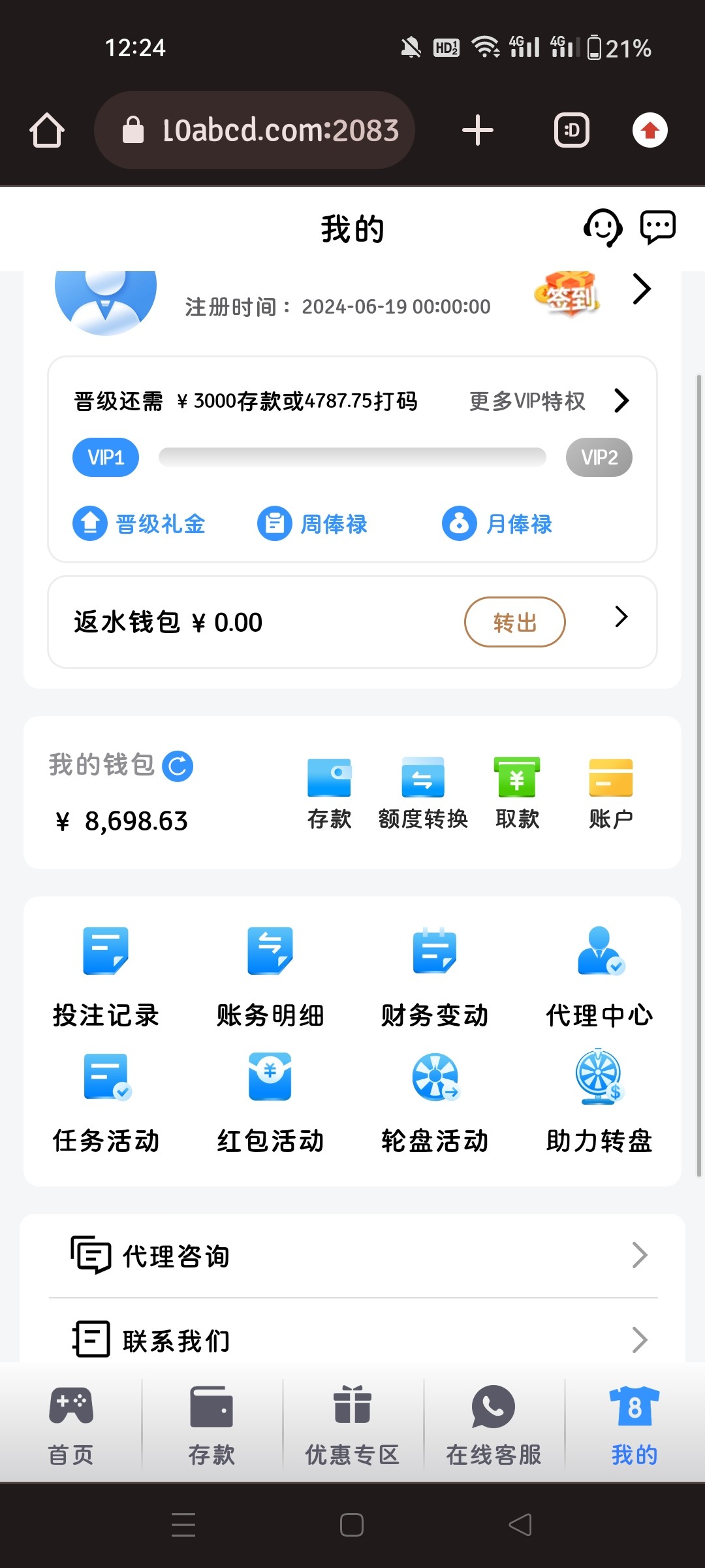 这撕逼台,不行呀,会封号的,好像是充100只能提188,运气不好,直接封号,这是我见过最垃圾的小蓝台。