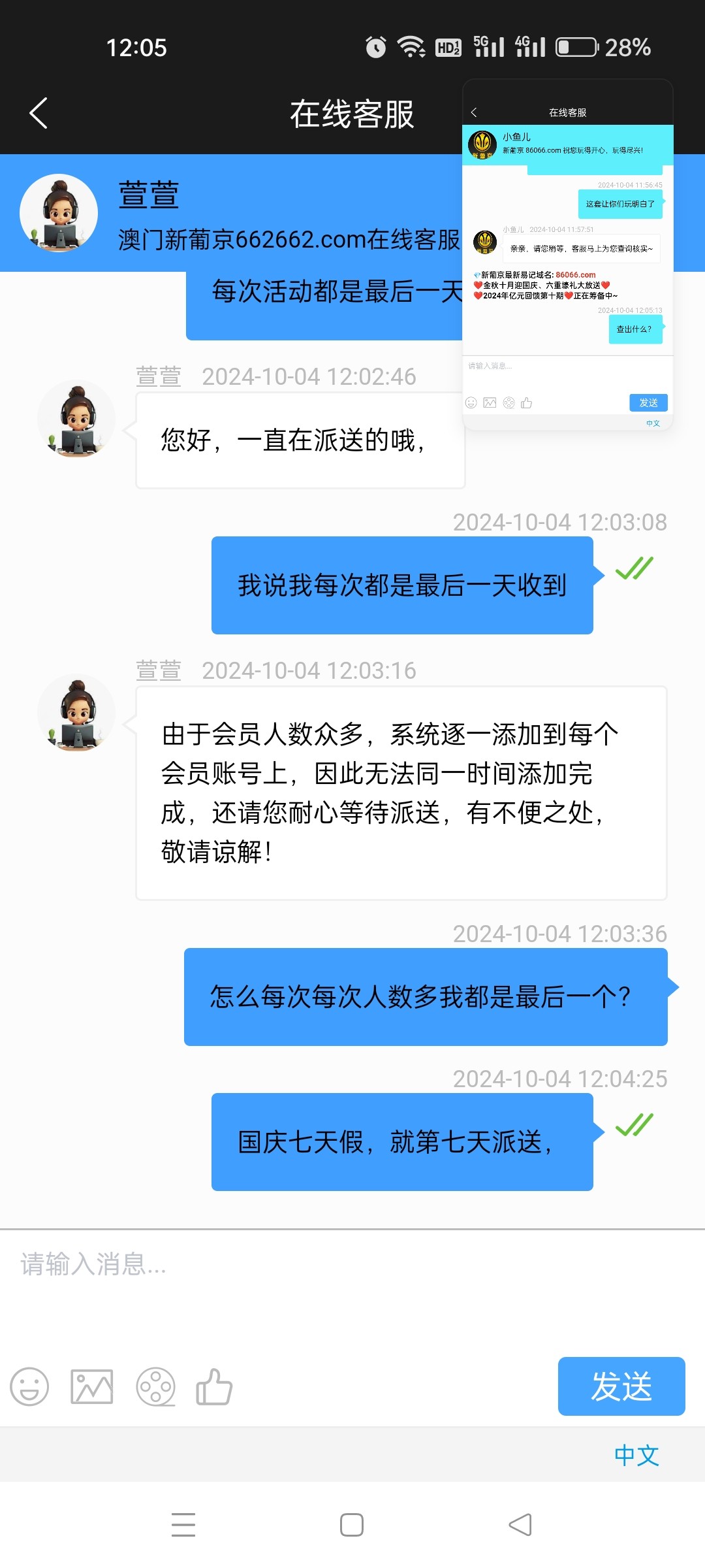 我天天玩,每次节日彩金要不是最晚就是不送,还要去找客服讨真是傻逼