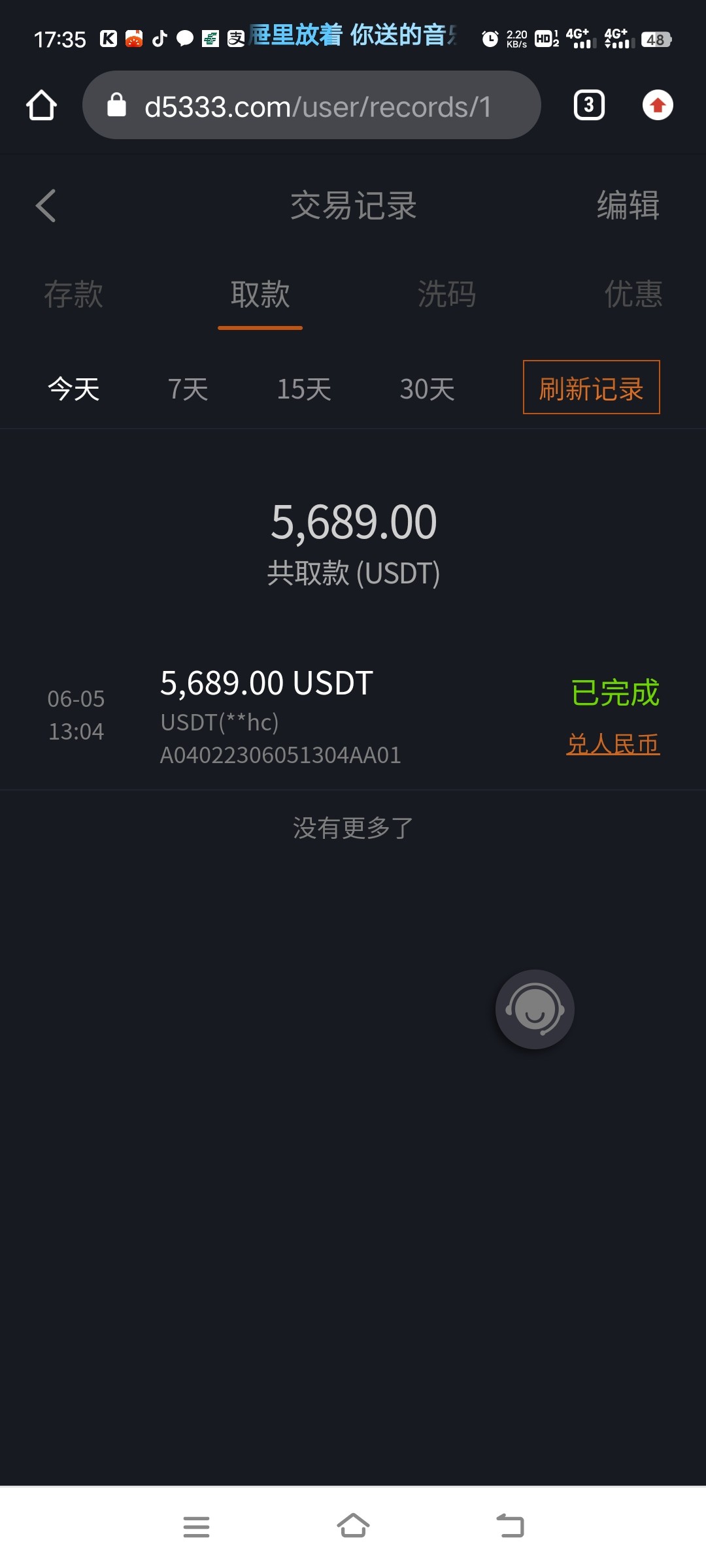 几分钟到账了