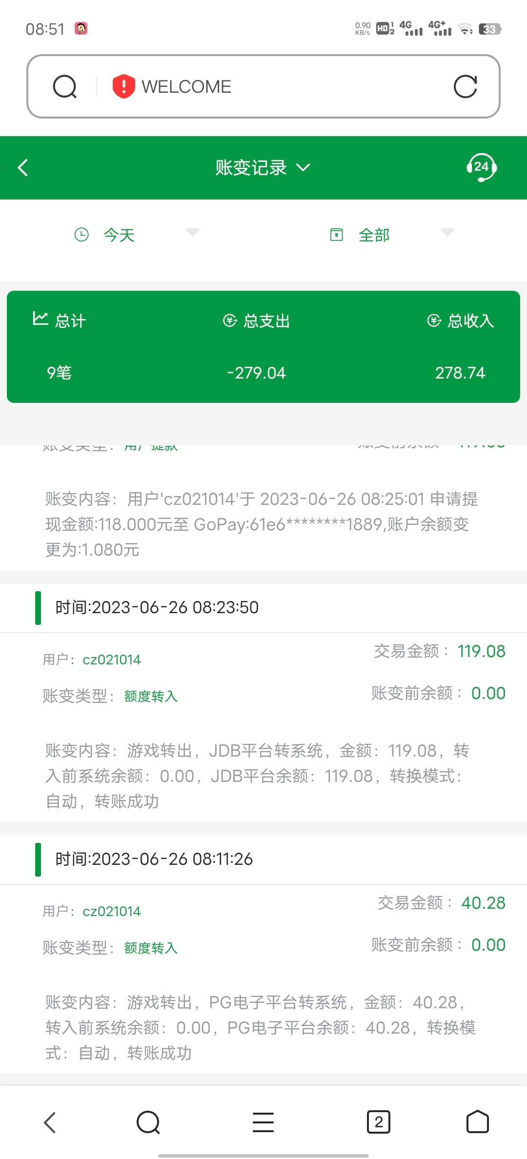 登号发现有一块,打到118提现,大格局,这都给到账,分文没充