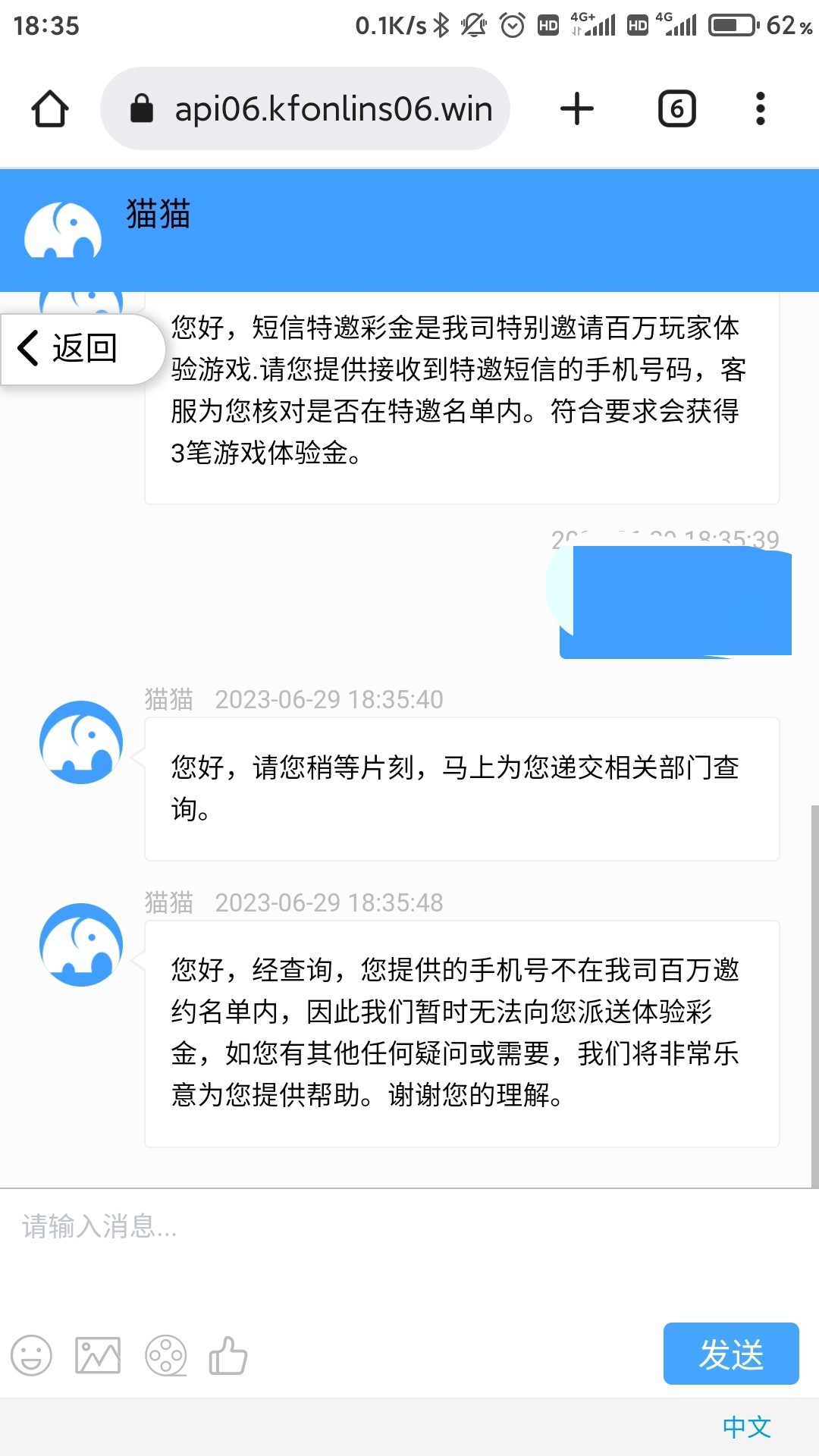 新用户注册找客服申请特邀彩金,看下方短信p图,特邀碰瓷!