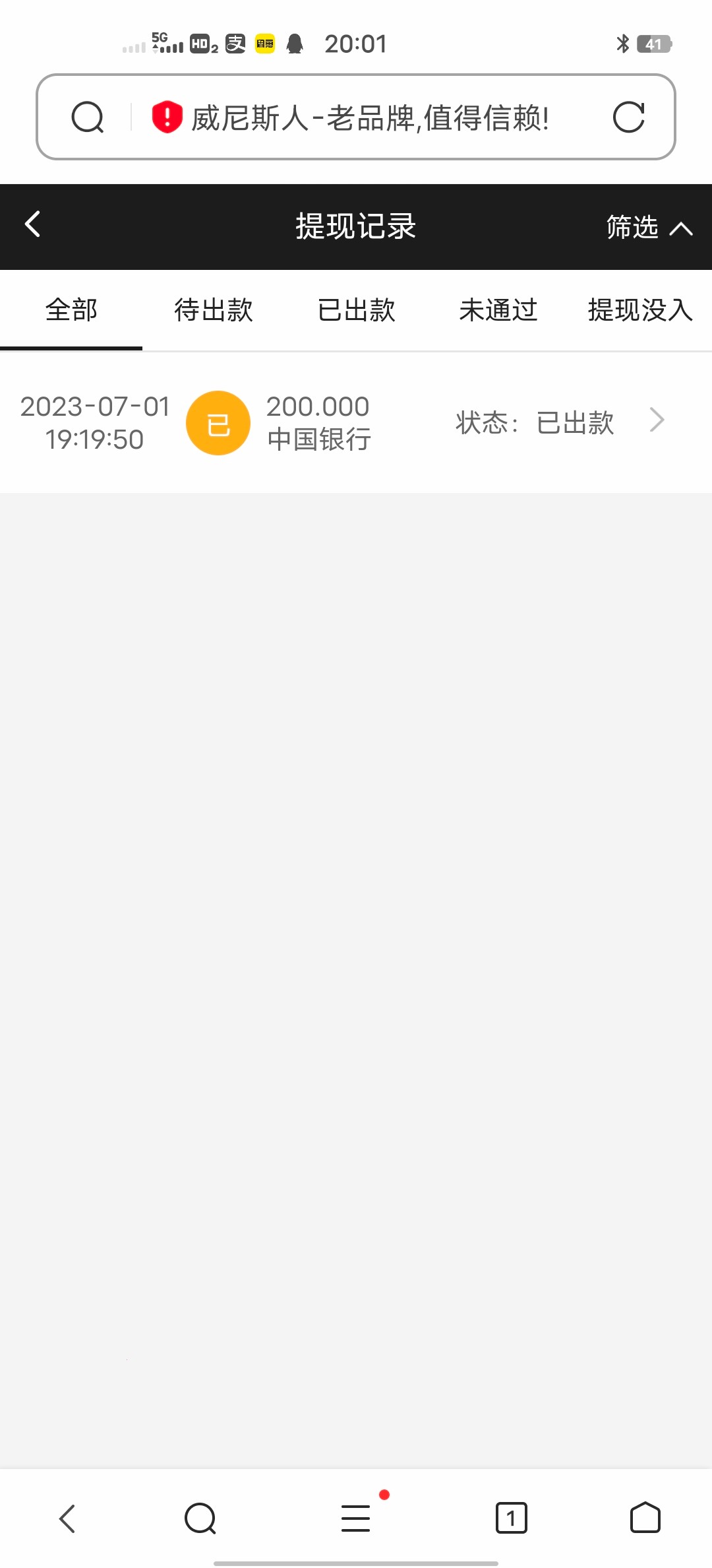 我也提现了 希望能到吧 已经30分钟过去了还没到账